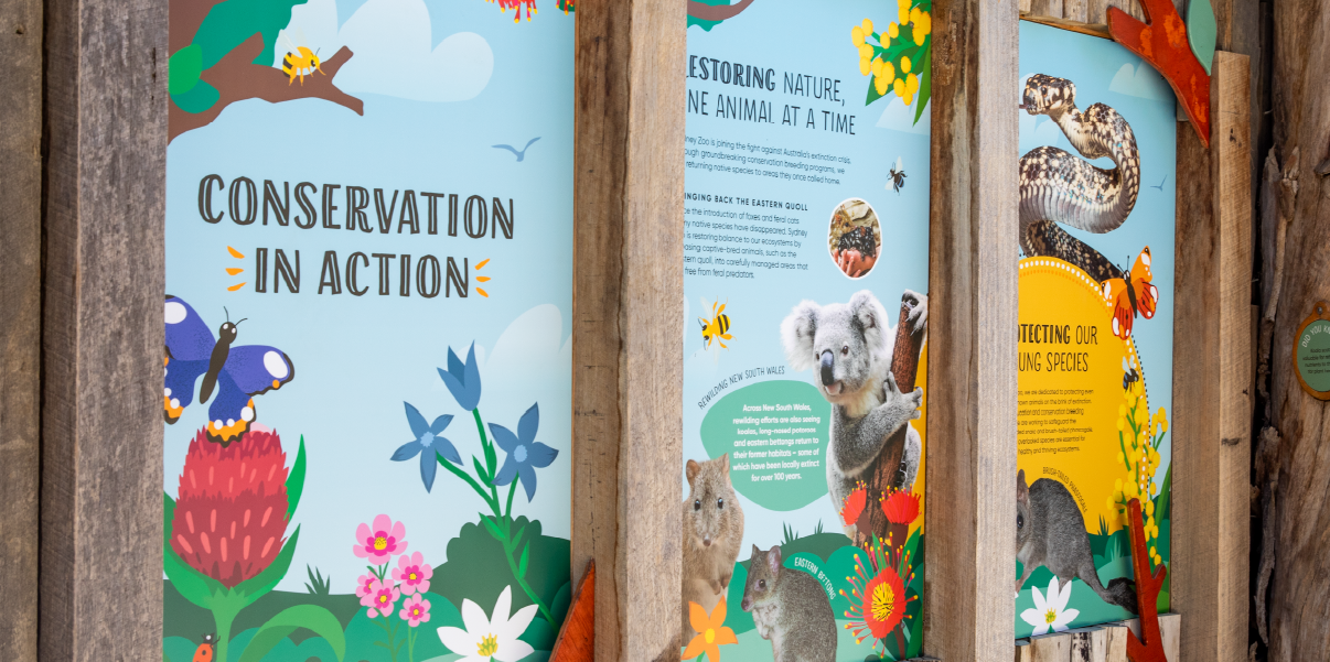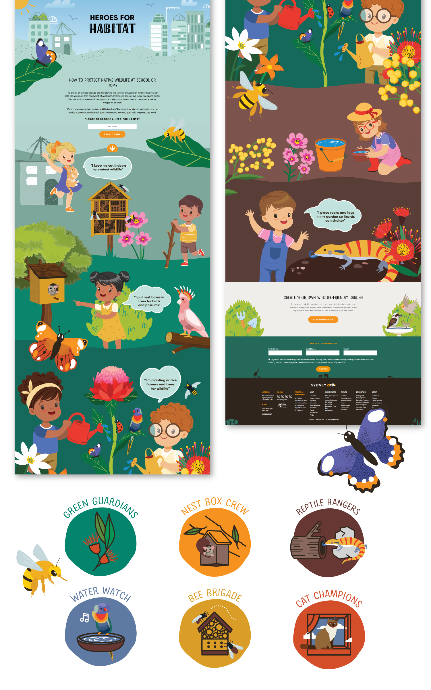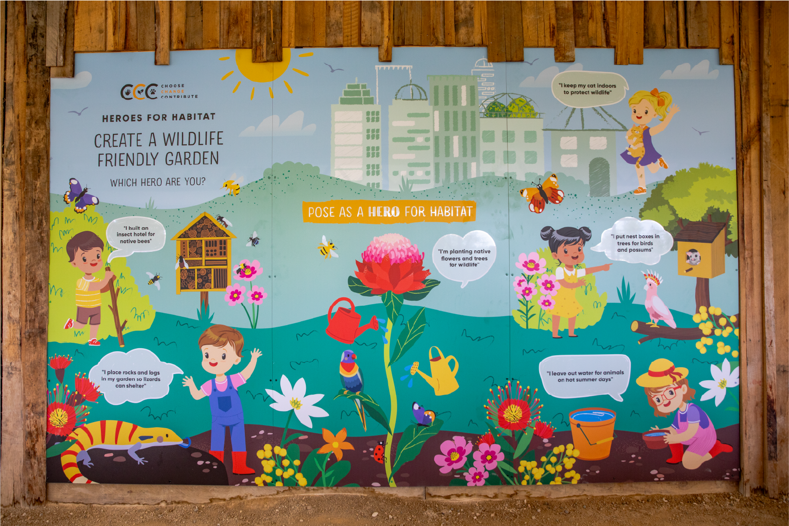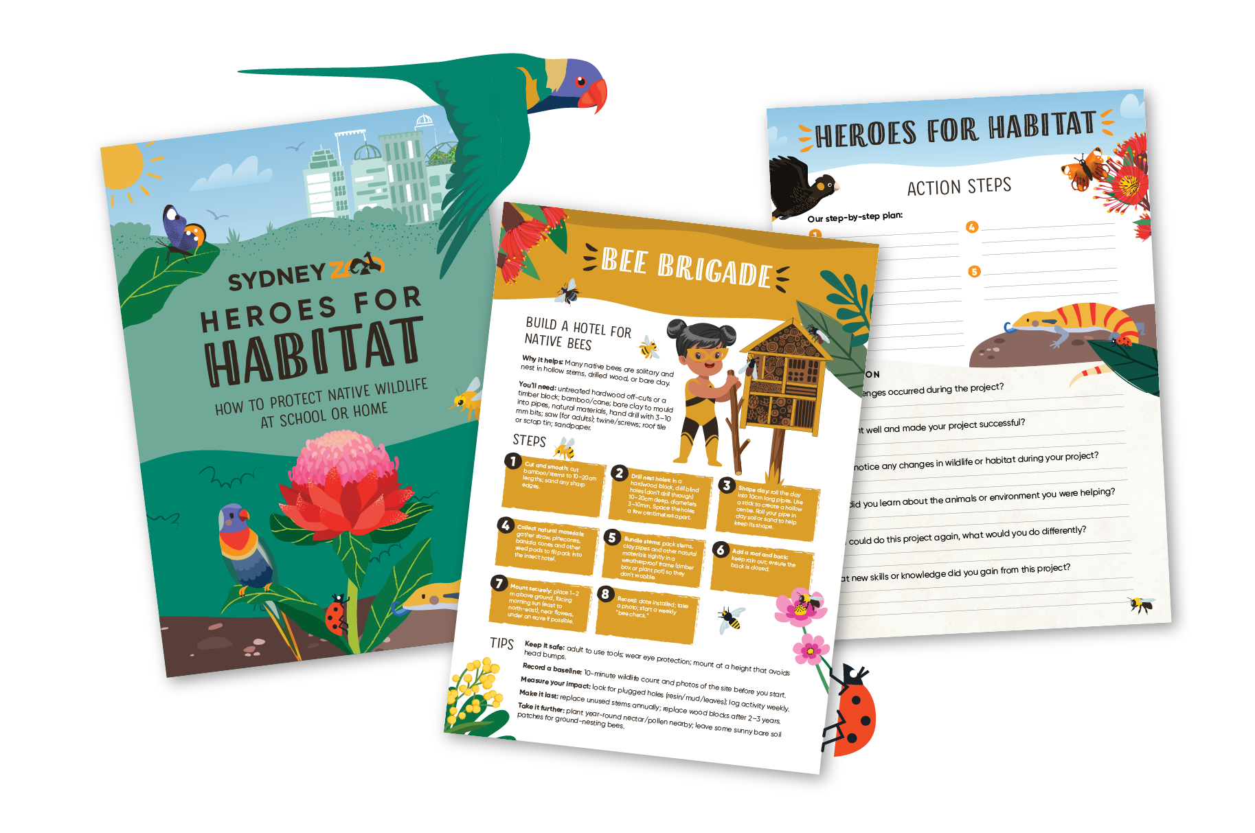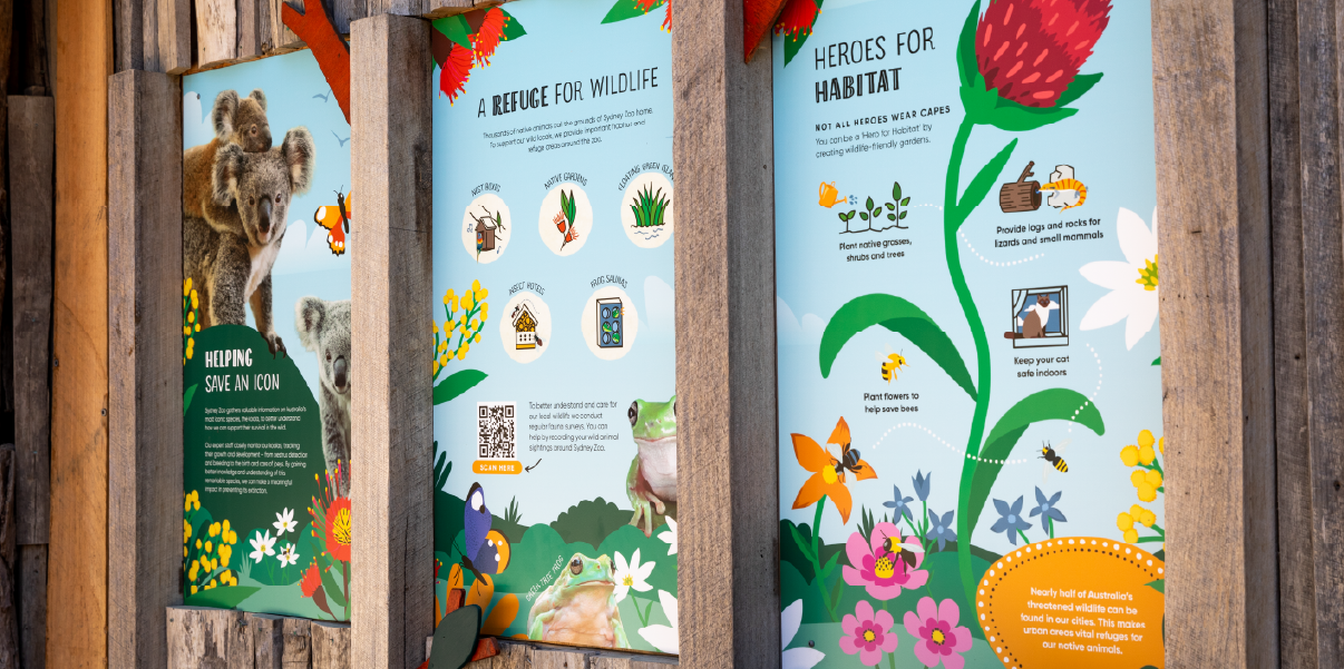 Heroes for Habitat is an educational campaign for Sydney Zoo designed to highlight the impact of everyday choices on Australian wildlife and the importance of protecting native habitats. The project translates complex environmental issues into an engaging, accessible experience through large interactive signage in the zoo, plus an web page with downloadable activities for school children.